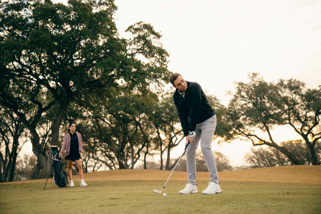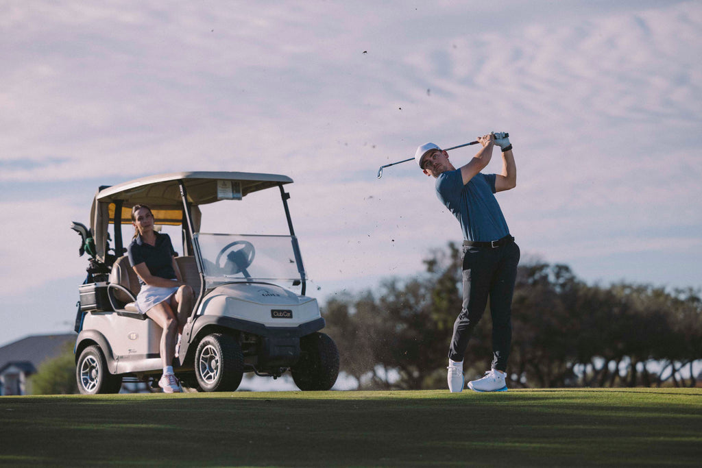 Clean, timeless silhouette designed for premium on-course appearance.